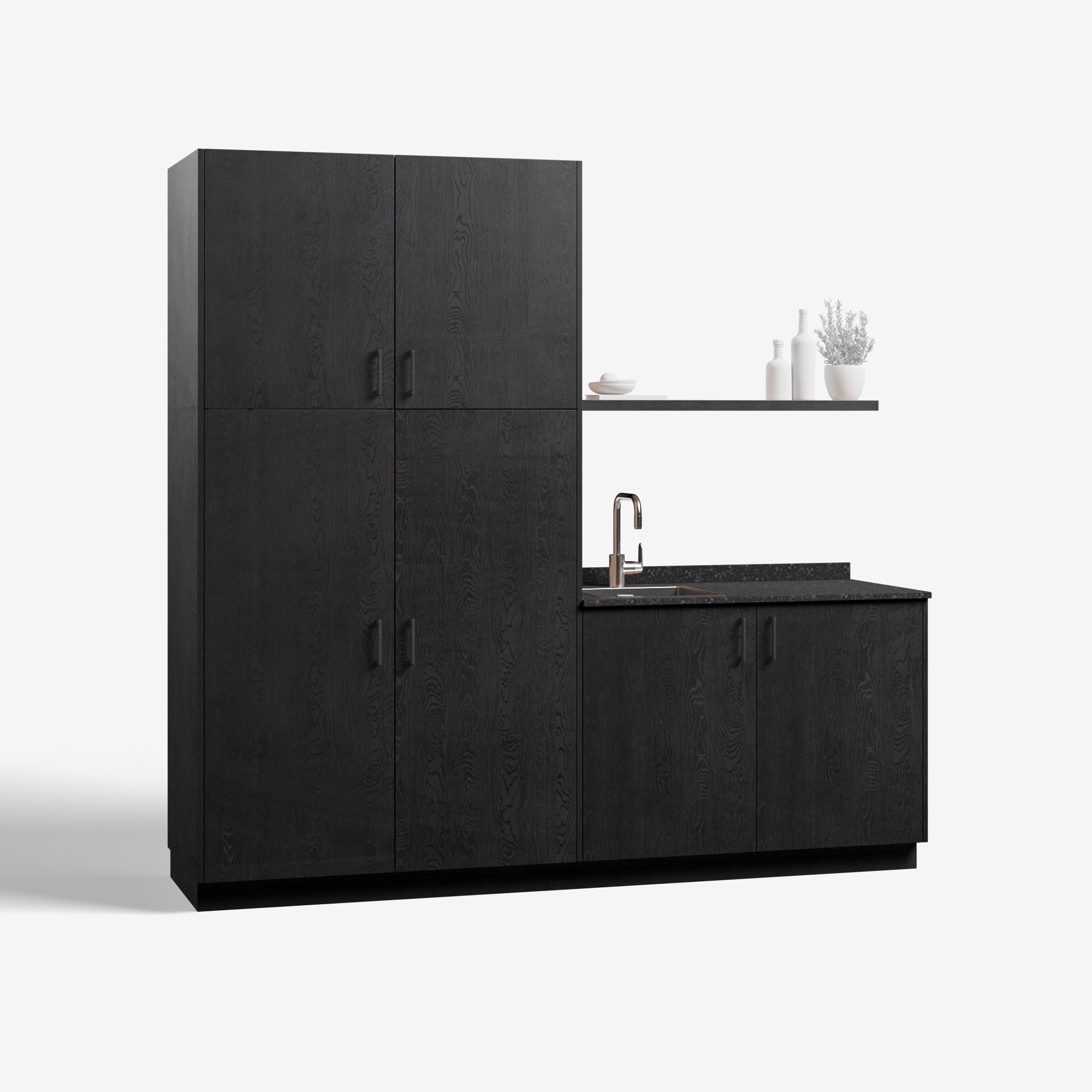 Bijkeukenkast Chip is een volwaardige bijkeukenoplossing voor jou, verpakt in een luxe meubel, ruim en praktisch. Met Chip maak je ruimte voor jezelf in jouw bijkeuken. Twee hoge kasten, twee bovenkasten, twee onderkasten, werkblad, spoelbak en een bijpassend wandschap. Chip biedt alles om jouw bijruimte optimaal te benutten…voor jou.